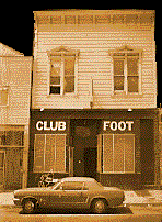 THE HISTORY OF CLUB FOOT The Club Foot, at 2520 Third Street in San Francisco, was created by a collective of five New York artists who had recently relocated to San Francisco: Richard Kelly, JC Garrett, Cindy Buff, Katherine Robinson, and Richard Edson. It was their obsession to marry high art values to the vitality of underground performance art; to fuse Frank Sinatra, Roy Orbison, and Albert Ayler and project that onto the art-rock stage. The 1980 "Club Foot" vinyl on Subterranean Records documents this scene, featuring four bands which evolved at that time: The Longshoremen, Naked City, Bay of Pigs, and the Alterboys. The Club Foot themes which open and close the aforementioned LP were performed by a composite of those groups - this was the first Club Foot Orchestra. Richard Edson on the cover designed by JC Garrett. Cover Photo by John Roberts from the opening night of the club. Edson wrote the lyric to "Frank Sinatra". Subterranean Records reissued the "Club Foot" vinyl in 2010. In February of that year, several of these bands participated in a 30-year reunion show at the Cafe Du Nord, which is documented in Tom Wheeler's film Club Foot: Moving In The Direction of History. Club Foot: Moving In The Direction of History.In January 1982, I, Richard Marriott, moved into the flat above the Club Foot. After fifteen months of ear-splitting angst emerging from below, I formed an orchestra to perform at a Club Foot music festival in June of 1983. Following a peculiar egalitarian ethic, all musicians were welcome to play; beginners took simple, but essential roles, virtuosos played the showy and difficult parts, and improvisors soloed over the top. We called ourselves "Orquestra FOOT a dentra la Boca". Our band included three members from the earlier group: Opter Flame, Karl DeLovely and Bruce Ackley of the ROVA Saxophone Quartet. Also present were Neil Kaku on bass, guitarist Eugene Chadbourne and Tutti on bass flute, plus Beth Custer, Josh Ende and Arny Young, who figure prominently in later groupings. Even at this first performance, the orchestra showed a fondness for music in odd meters: my composition "The Trial of Silly Satan" begins in a West African 12/8, moving through 7/4, 11/8, 5/4 and 13/8 before returning to the theme in 12/8. A month after the festival, Richard Kelly committed suicide at his home. The orchestra reformed in October of 1983 to play at the Horn Reborn Festival at the "On-Broadway" in San Francisco. At this festival we were rechristened the Club Foot Orchestra, in reference to our home base and in tribute to the spirit which created the Club Foot. Over the next few years we played every club in town and people danced like they were on the Titanic. This period of the orchestra's history was captured in two Ralph Records recordings: "Wild Beasts" and "Kidnapped". The nightclub Club Foot held its last performance in November of 1986. Here's a link to the San Francisco Public Library exhibit of Club Foot material: